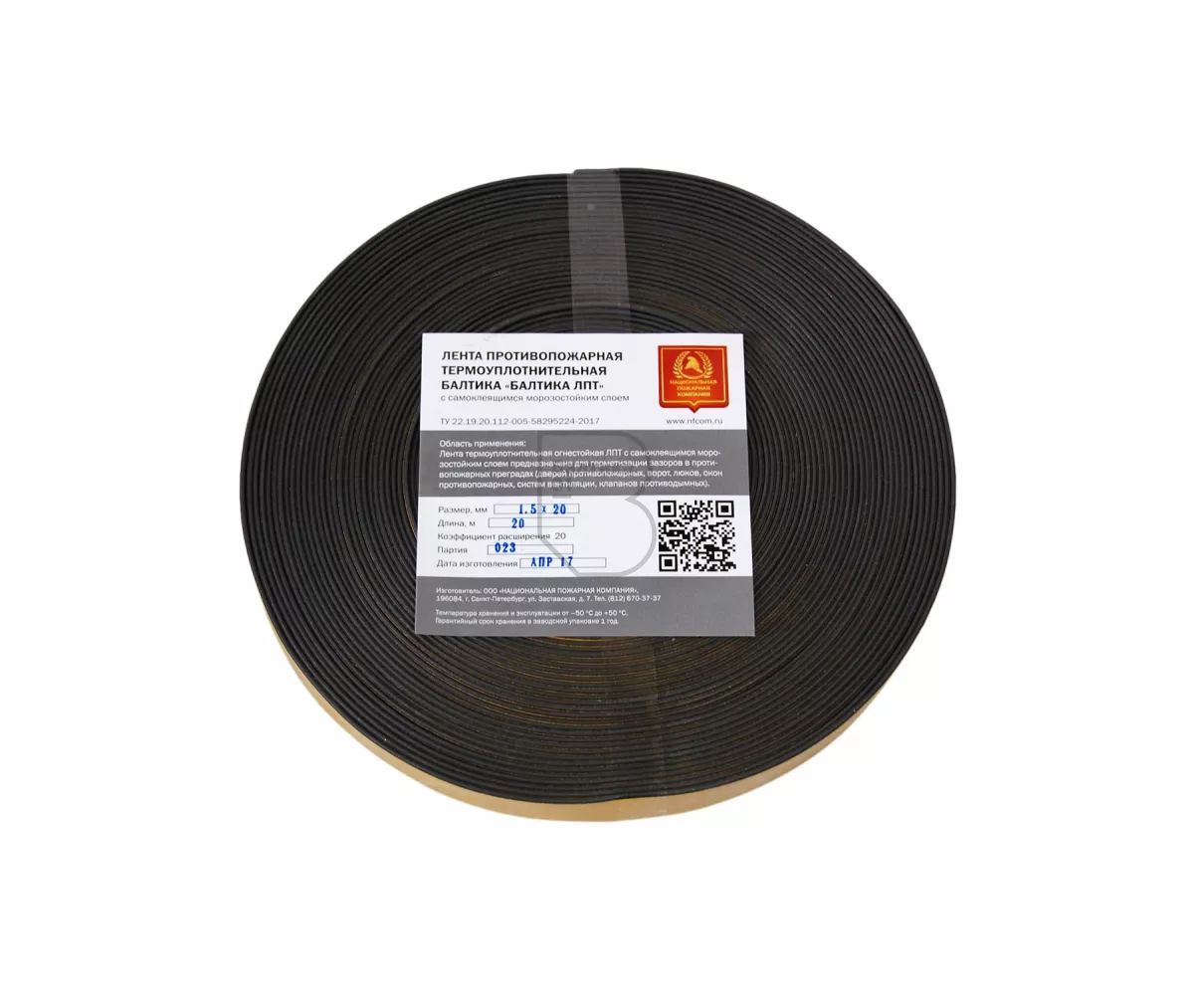 Лента противопожарная термоуплотнительная «БАЛТИКА ЛПТ» с самоклеящимся морозостойким слоем предназначена для герметизации зазоров в противопожарных преградах (дверей противопожарных, ворот, люков, окон противопожарных, систем вентиляции, клапанов противодымных).
