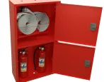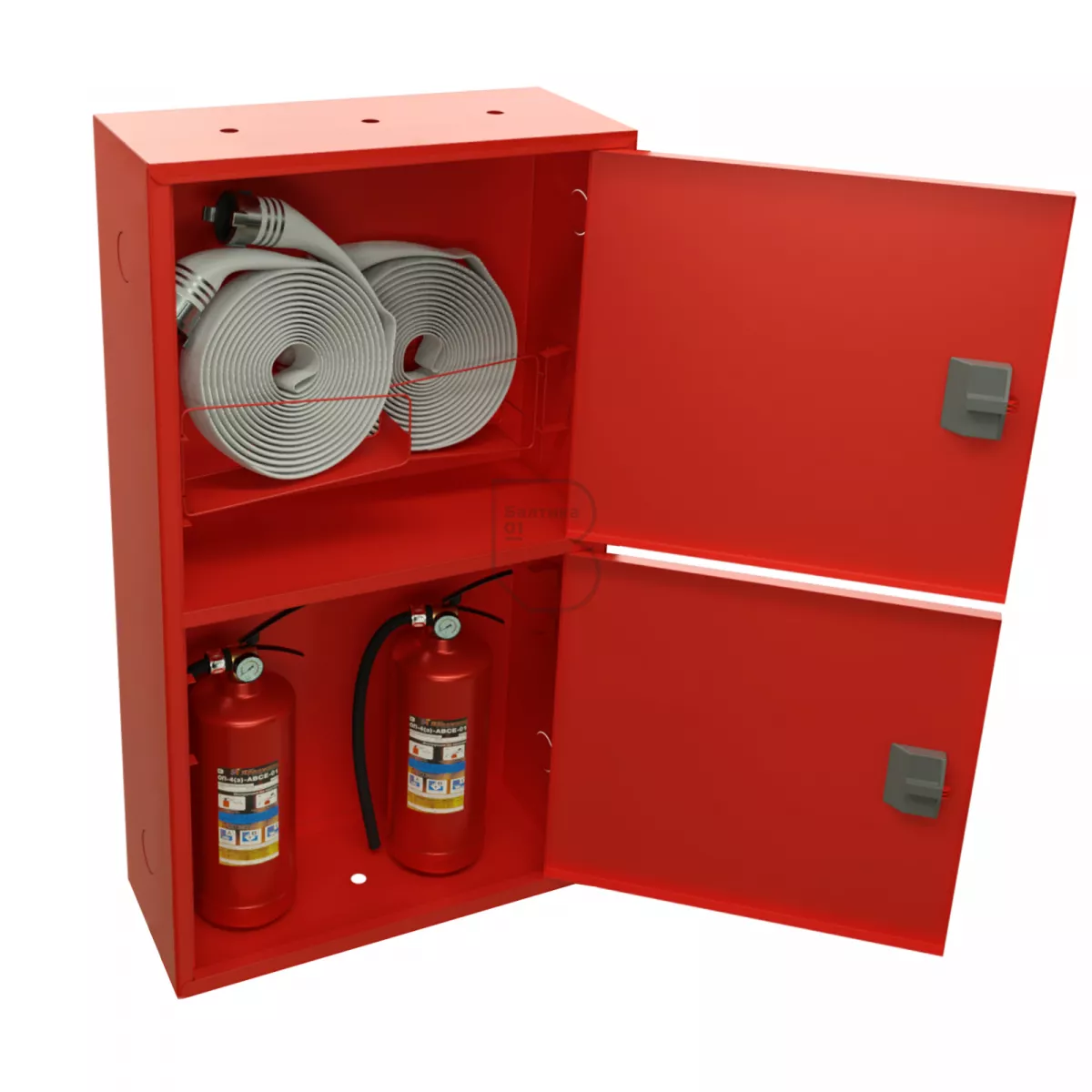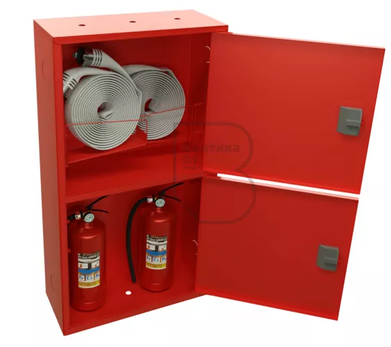 Шкаф пожарный ШПК-320-12 НЗК – предназначен для размещения и хранения двух рукавов пожарных в сборе, двух пожарных вентилей (клапанов) и двух огнетушителей до 10 кг. Шкаф оборудован двумя кассетами рукавными (в верхнем отсеке шкафа размещаются две кассеты).