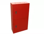 По типу монтажа – навесной, по наличию смотрового окна на дверцах шкафа – закрытый, по цвету изделия – красный (RAL 3000).