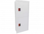 Дверца пожарного шкафа открывается на 160 градусов, открывание двери универсальное (правое и левое). Дверца имеет дополнительные загибы для усиления жесткости конструкции. На двери и корпусе шкафа предусмотрены отверстия для опломбирования шкафа. Дверь пожарного шкафа имеет запорное устройство в виде пластиковой защелки. Дверь закреплена с помощью монтажного штифта, при необходимости она может быть снята в результате простого нажатия на кнопку штифта.